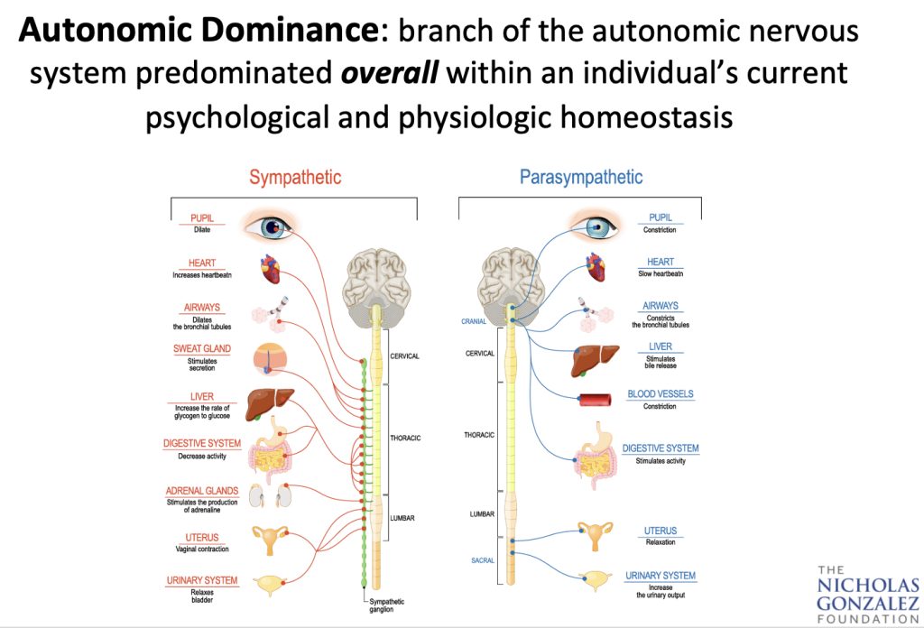 Increasingly, Pottenger believed that disease, whatever its form, from allergies to cancer to eczema, had as a major cause autonomic system imbalance. Health, he came to believe, resulted when the two branches of the autonomic system, and in turn, all the tissues and organs they control, were equally strong, efficient, and in physiological balance. - Dr. Nicholas Gonzalez, MD
