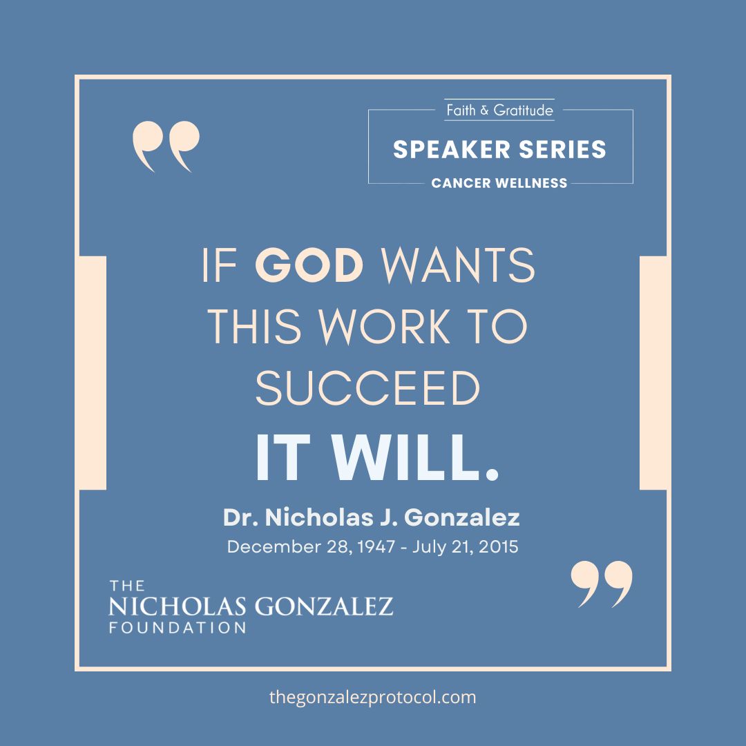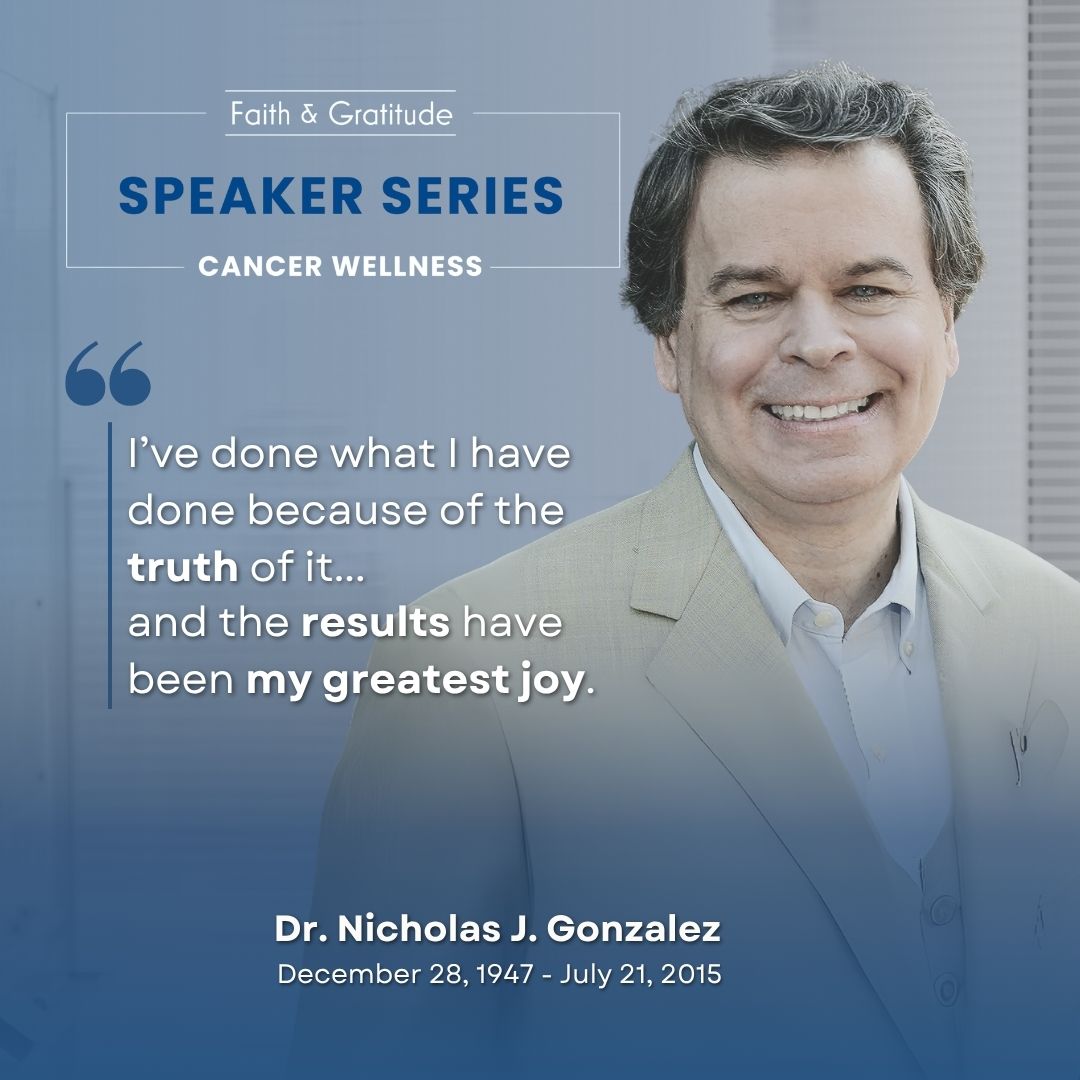 You are invited to watch this special conversation that honors the legacy of Dr. Nicholas Gonzalez, featuring Mary Beth Gonzalez and Dr. Andre Williams, a Gonzalez Guardian and integrative physician. This episode of the Faith & Gratitude Cancer Wellness Speaker Series explores what it truly means to heal — physically, emotionally, and spiritually — and reflects on Dr. Gonzalez's lasting impact, ten years after his passing. Watch the full episode at: https://faithandgratitude.org/speaker-series/